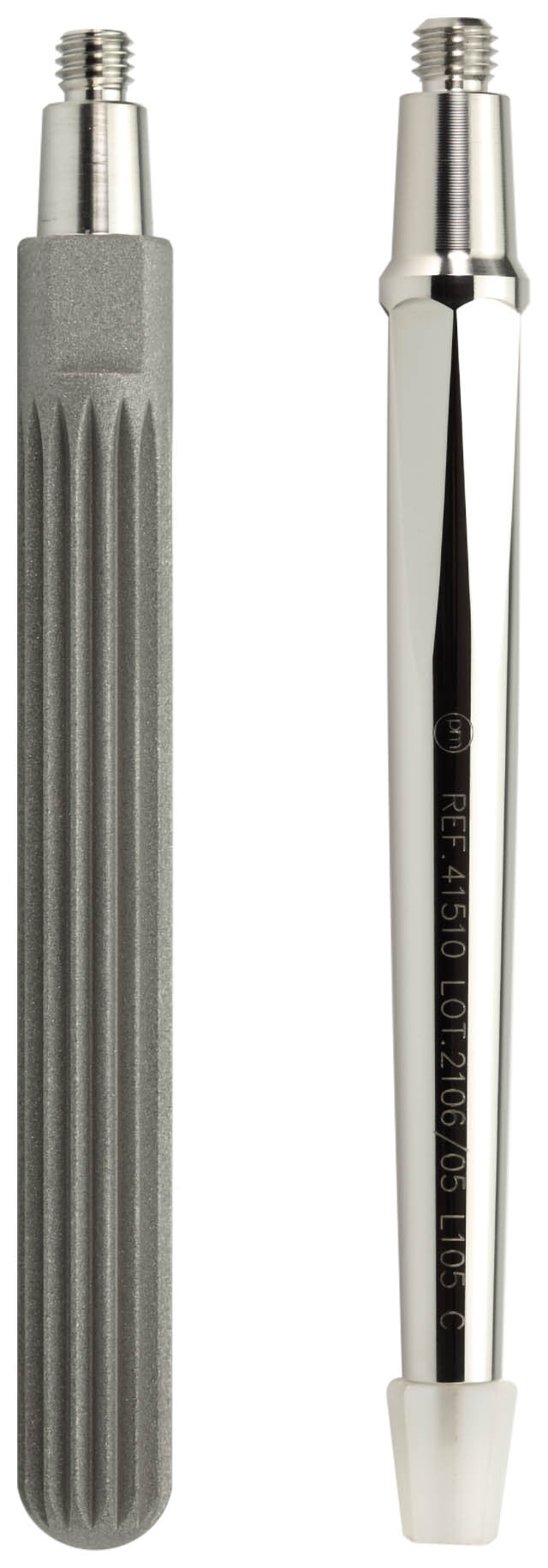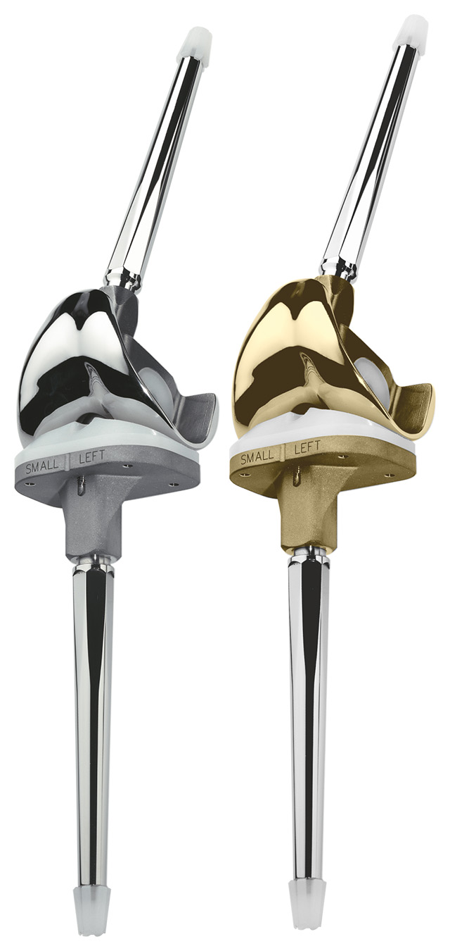 Trzpienie śródszpikowe są dostępne zarówno w wersji cementowanej, jak i bezcementowej, do przykręcenia do komponentu udowego i piszczelowego za pomocą połączenia stożkowego Morse’a.