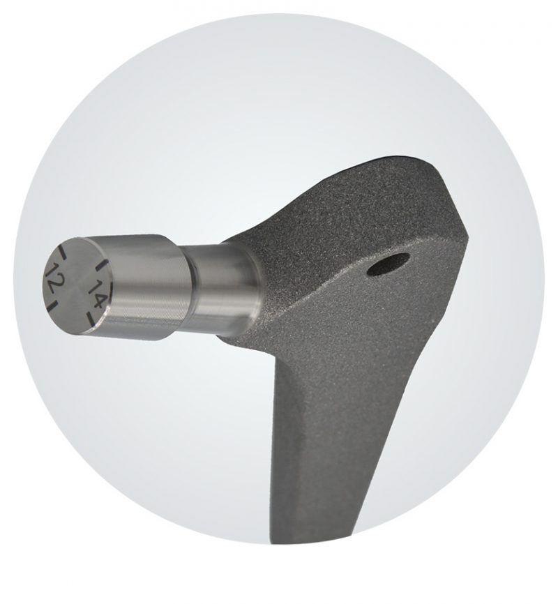 Dystalny koniec trzpienia PBF jest zaokrąglony i zwężony, aby uniknąć koncentracji naprężeń w obszarze trzonu.