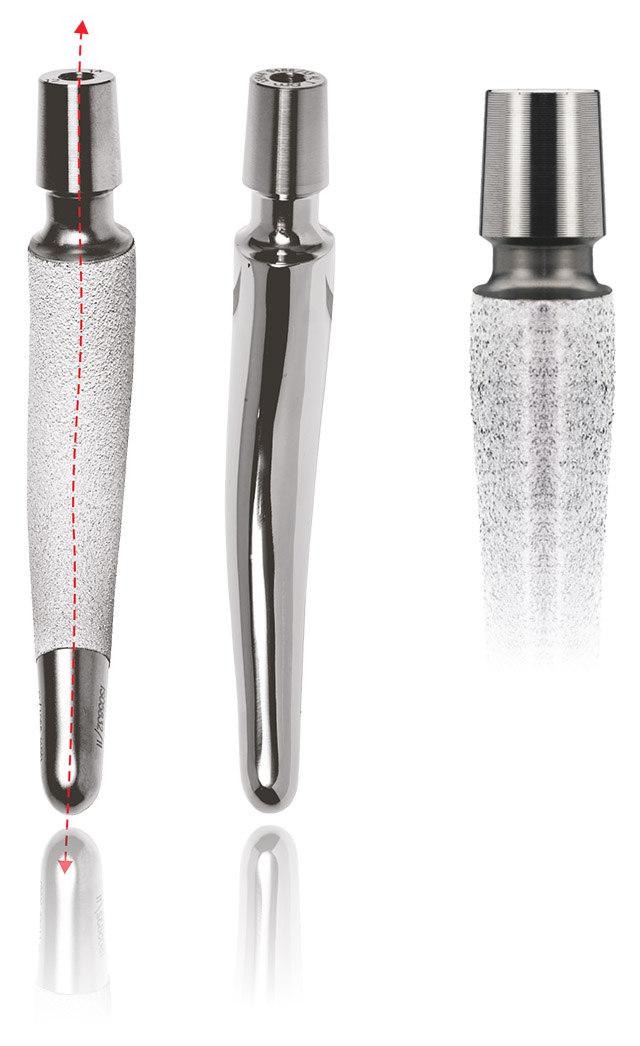 Trzpień PROMISE S charakteryzuje się anatomicznym kształtem i zmniejszonymi wymiarami, co pozwala na dostęp minimalnie inwazyjny, zachowanie szyjki kości udowej i minimalną utratę kości w okolicy przynasadowej.